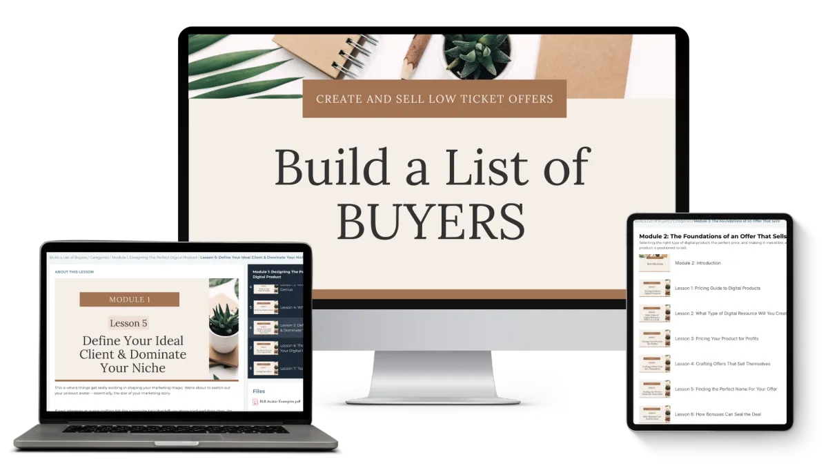 Build a List of Buyers is your golden ticket to not just creating a digital product (anyone can do that) but designing a digital offer that sells.